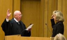 Parrish earlier took an informal oath of office and had been hearing cases before Monday's formal investiture.