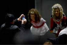 A mother makes a photo of her daughter as Utah hosted the Western Regional Championships of Irish Dance (The Western Regional Oireachtas) at the Salt Palace Convention Center, Sunday, November 22, 2015.