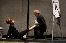Hallie Schmidt gets some help stretching out from Roxanne Schmidt of Olympia, Washington as Utah hosted the Western Regional Championships of Irish Dance (The Western Regional Oireachtas) at the Salt Palace Convention Center, Sunday, November 22, 2015.