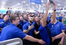 "It was really funny," said Kristine Berg, who dropped in to pick up a movie with her 17-year-old son without really expecting a crush of shoppers.