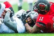 Scott, who went down tangled up on a passing play, later returned from the locker room off crutches and ran a bit on the sidelines. After the game, he limped his way back to the locker room, ready for some time off before Utah's bowl.