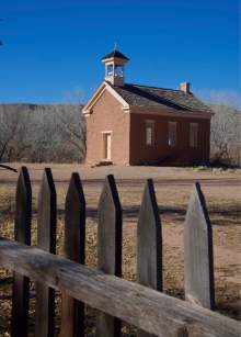 There, the schoolhouse/church built in 1886 but last used in 1919 stands. It was built using wood brought in from Mt. Trumbull, 75 miles away. The Alonzo H. Russell House, constructed in 1862, also stands.