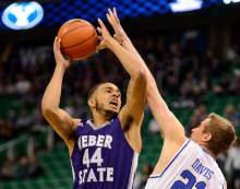 Weber State came out firing in the first half, forward Zach Braxton cleaning up in the paint for eight points on 4-of-4 shooting, and guard Jeremy Senglin sinking two shots from behind the arc on his way to eight points