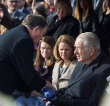 More than 500 people  including Gov. Gary Herbert and both surviving former governors, Mike Leavitt and Jon Huntsman, as well as Sen. Mike Lee, and LDS apostle Russell M. Nelson  attended services at the Canyon Rim Stake Center, where all seven of Walker's children shared memories of her long and eventful life.