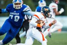 Bingham nose guard Jay Tufele motored across the field in pursuit of the play on the hashes, moving unfathomably quick for someone carrying 285 pounds on a 6-foot-3 frame. A Lone Peak receiver was in the process of being stalled and corralled by another defender when Tufele imploded him into the ground.