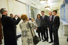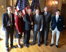 Utah Supreme Court Justice nominee John Pearce, his wife Jennifer Napier-Pearce and sons Jonas, 14, and Ben, 17, pose for pictures after he was confirmed by the Senate at the Utah State Capitol Wednesday December 16, 2015.
