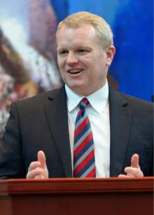 John Pearce answers questions from reporters after Gov. Gary R. Herbert announced that Pearce will fill a vacancy on the Utah Supreme Court during a press conference in the Gold Room at the Utah State Capitol in Salt Lake City, Monday, November 9, 2015.