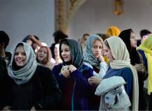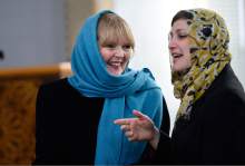 Students from Corner Canyon High School leave after a visit with Imam Muhammed S. Mehtar. They listened to him speak about the hijab and its meaning in Islamic culture prior to a news conference at the Khadeeja Islamic Center in West Valley City, Thursday, December 17, 2015.
