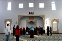Students from Corner Canyon High School leave after a visit with Imam Muhammed S Mehta