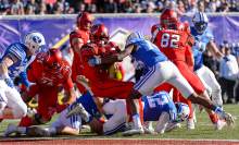 • BYU rallies after turnovers on five consecutive series to start the game, outgaining Utah 386 total yards to 197 in Bronco Mendenhall's final game as head coach.