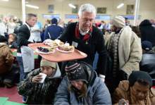 Dieter F. Uchtdorf, second counselor in the First Presidency of The Church of Jesus Christ of Latter-day Saints, serves up pie as volunteers and other community leaders serve the annual Christmas dinner to more than 800 homeless Utahns Friday at St. Vincent de Paul Dining Hall in downtown Salt Lake City.