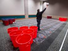 From the GameRoom, guests can take the escalator down to the Crash Box area, where they can bang on garbage cans and lids; or they can make their way to the BounceTown, a room filled with inflatable bounce houses and slides, or the BallRoom where they can bounce, kick or throw one of the 2,016 plastic beach balls that will be inflated for the event.