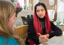 "She's not just a beautiful face and eloquent speaker, she's also very smart," says Alyssa Wolf, her adviser, referring to Sonita's 100 percent score on her geometry final, which she took after missing classes during fall term due to international speaking engagements.