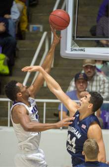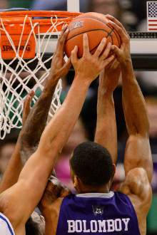 Weber State assistant coach Eric Duft is showing a film clip of Joel Bolomboy grabbing another rebound, pointing out how the Wildcat senior forward/center uses positioning, strength and athletic ability to rank second in the country.