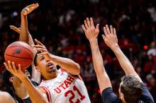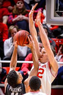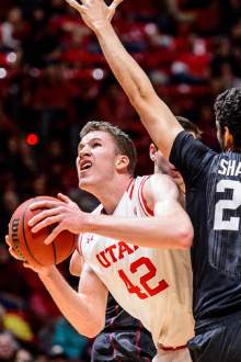 Utah's guards also delivered: Seniors Brandon Taylor and Dakarai Tucker combined for 10 for 15 shooting, including six 3-pointers. Junior guard Lorenzo Bonam was slippery driving into the lane to add 14 points while stuffing the stat sheet with 6 rebounds and 5 assists.