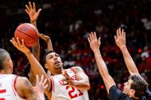 Going 4 for 4 in the first half, Taylor's performance had a particular flair. The senior guard nailed a 3-pointer in transition late, grabbed a steal that led to a Brekkott Chapman deep shot, then hit another 3-pointer all in the final five minutes before halftime.