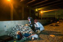 Saturday morning at 4:30 an outreach team from Utah's Volunteers of America marched along a railroad siding in an industrial area as rain turned to snow. Where the tracks run beneath a freeway overpass, they came upon a big lump of blankets and a cardboard box containing a mishmash of packaged food.