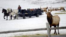 Hugh Jenkins is helped along by Clydesdales at Hardware Ranch Wildlife Management Area in Blacksmith Fork Canyon as he takes visitors on a unique 20 to 30 minute ride amongst the 500 elk on a recent winter weekend.