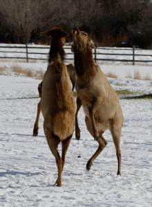 A pair of cow elk challenge one another in a move called boxing at Hardware Ranch Wildlife Management in Blacksmith Fork Canyon.