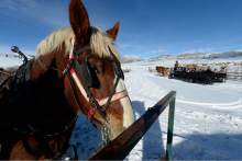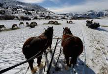 Randy Grover guides a pair of Clydesdales over the snowpack at Hardware Ranch Wildlife Management Area in Blacksmith Fork Canyon for an up close view of the wintering elk. The ranch opens Dec. 12 with the annual Rocky Mountain Elk Festival being held Dec. 13. The ranch will offer sleigh rides through mid-March.