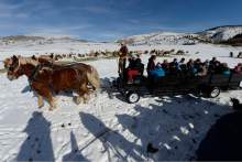 Several wagons being pulled by Clydesdales at Hardware Ranch Wildlife Management Area in Blacksmith Fork Canyon take visitors on a unique 20 to 30 minute ride amongst the 500 elk on a recent winter weekend.