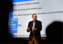 Before Goodwin's remarks, RootsTech guests heard from former Utah Gov. Mike Leavitt, who shared memories of serving as a member of George W. Bush's presidential Cabinet, working with Mitt Romney's presidential campaign and bringing the Winter Olympics to Salt Lake City.
