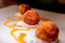 Redemption came in the form of creative and fun food presentation pastitsio croquette ($10), rounds of spiced beef and béchamel that were secured to the plate with a dollop of Greek yogurt.