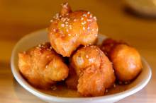 For dessert, end with pillowy bites of the traditional Greek doughnut loukoumathes ($7), finished with spiced honey syrup and sesame seeds.