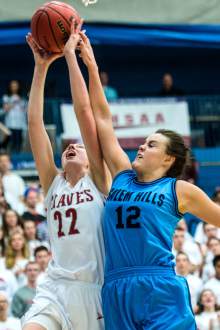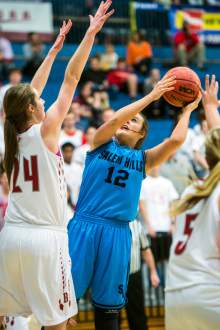 Salem Hills, led by Nelson's 14 and 13 from Gustin, got some of the deficit back with a 9-0 run late in the second period. Still down 51-42 midway through the fourth, two old-fashioned three-point plays by Nelson got the Skyhawks to the cusp of tying before her trey went in and out.