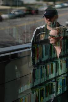 Marmalade residents Stephen and Amy Merrigan point out areas of their neighborhood from the second floor patio of Salt Lake City Public Library's newest library, the Marmalade Branch, during its grand opening on Saturday. The Marmalade Branch, at 280 West 500 North in Salt Lake City, is The City Library's eighth location. The two-story facility offers more than 18,000 square feet of space for the growing Marmalade and West Capitol Hill neighborhoods.