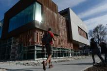 Ryan Mikolash enjoys the large deck on the second floor as Salt Lake City Public Librar