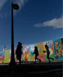 A colorful wall marks the boundary of Salt Lake City Public Library's newest library, the Marmalade Branch, during its grand opening on Saturday. The Marmalade Branch, at 280 West 500 North in Salt Lake City, is The City Library's eighth location. The two-story facility offers more than 18,000 square feet of space for the growing Marmalade and West Capitol Hill neighborhoods.