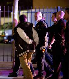 Hansen said one officer was hit with a bottle, but he did not have details about whether that officer or any other was injured.