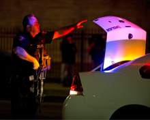 Neighboring departments, including Unified Police Department, West Valley City, Sandy and University of Utah police, deployed to assist Salt Lake City officers. In all, almost 100 officers, some carrying riot shields, arrived.