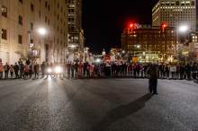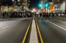 While police provided traffic control, the protesters marched to the Public Safety Building at 475 S. 300 East, then back to the Federal Building. There, they blocked the intersection until dispersing at 8:30 p.m.