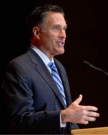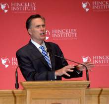 "If the other candidates can find common ground, I believe we can nominate a person who can win the general election and who will represent the values and policies of conservatives," Romney said at the University of Utah's Gardner Hall before a crowd of 680, mostly students, including some standing in the stairways. Romney's sons Josh and Ben were in attendance, as was Gov. Gary Herbert, Lt. Gov. Spencer Cox and U. President David Pershing.