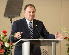 Gov. Gary Herbert also spoke the ceremony and characterized Huntsman as a benefactor to the school and the state.