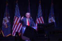 But Trump plunged ahead, hitting many of his favorite topics, from his strength in recent polls to his plan to build a wall along the border with Mexico to his opposition to international trade deals.
