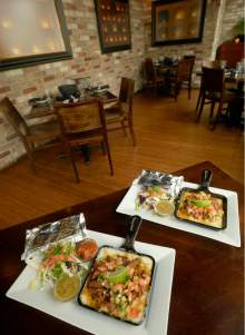 An order of enchiladas suizas, stuffed with roasted pulled chicken and baked in a tomatillo cream salsa topped with melted queso Chihuahua, cilantro and white onion, will fill up lunch patrons for $13.95, while the larger dinner portion runs $17.95. Both meals come with sides of rice and beans, while the complimentary dessert is buñuelos drizzled with local honey for lunch as opposed to churros at dinner.