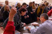 Voters had to be committed Tuesday, when the Democratic turnout overwhelmed state party expectations, leading to caucuses that ran out of ballots, forcing officials to scramble to print more. The state party originally printed 65,000 ballots but by the end of the night predicted that 80,000 people showed up to vote at just 90 locations.