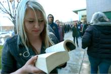Sammy Washington, 22, stood in the long line at Mountain View Elementary in Salt Lake City's Glendale neighborhood. She said Sanders is inspiring to young people. "He's here to bring people together," she said, pointing to his calls for government-run health care and tuition-free education
