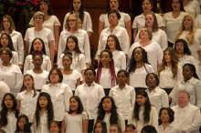 The never-before-seen choir, led by Lillian Severinsen, "symbolized" the church's global reach, speakers said. Wearing simple white blouses and black skirts, singers came from seven stakes (groups of congregations) across the greater Salt Lake City area, and included refugees from Sierra Leone, Thailand, Kenya, Cambodia and other far-flung regions. Some knew little or no English, but were able to master the lyrics and harmony of several Mormon hymns.