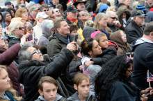 The rally ended with the crowd singing "God Bless America" as Graham walked off the platform and entered the Decision America bus.