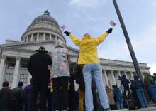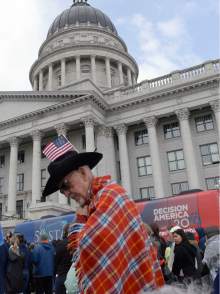 A low hum washed over the flag-waving throng as Utahns mumbled their individual prayers, punctuated by cries of "Amen," "Hallelujah" and "Praise the Lord."