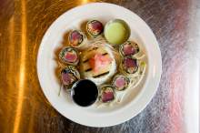 I tried the aforementioned tacos at Porcupine because I've had other good fish there. The ahi tuna rolls ($13.99), one of eight appetizers on the menu, are lovely morsels of rare fish bundled with veggies in wonton and nori paper then just lightly fried. They're perfect for a light lunch or to share with the table. Beware the wasabi sauce: In large doses, it will make you weep.