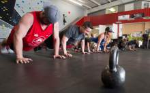 Gym members so pushups during the fourth annual online drive for nonprofit donations, dubbed Love UT Give UT, at the gym Fit To Recover in Salt Lake City, Thursday, March 31, 2016. The gym, designed for people recovering from drug and alcohol addiction, offered its members and their friends and family the chance to work out for money. Last year, Fit To Recover raised $3,000 through 30,000 burpees, situps, push-ups, etc. Love UT Give UT raised over $1.2 million for nearly 500 charities during its daylong drive in 2015 and hoped to raise $1.6 million in 2016.
