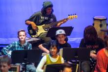 Emil Welker performs 'Kashmir' with other students during their annual pops concert at Sal