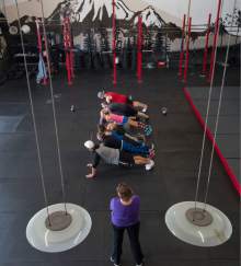 Jami Wright climbs with her husband, Colby Wright, during the fourth annual online drive for nonprofit donations, dubbed Love UT Give UT, at the gym Fit To Recover in Salt Lake City, Thursday, March 31, 2016. The gym, designed for people recovering from drug and alcohol addiction, offered its members and their friends and family the chance to work out for money. Last year, Fit To Recover raised $3,000 through 30,000 burpees, situps, push-ups, etc. Love UT Give UT raised over $1.2 million for nearly 500 charities during its daylong drive in 2015 and hoped to raise $1.6 million in 2016.