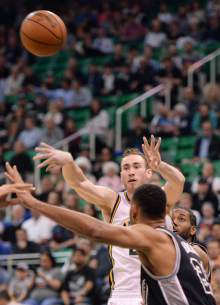 Leonard makes life hell for opposing offenses, and he's given Jazz forward Gordon Hayward all sorts of trouble this year. In three meetings with the Spurs leading up to Tuesday night, Hayward had shot just 32 percent (11 of 34) from the field, including just 2-of-7 shooting from deep. He'd turned the ball over six times. In his 87 minutes, the Jazz had been outscored by 88 points.