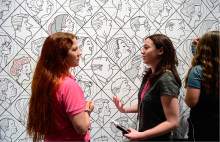 "It's fun to color things here where everyone can see it and everyone can do it," she said. Her dad, Bountiful artist Bryan Beach, created some of the panels, incorporating the likenesses of his five children into the works.